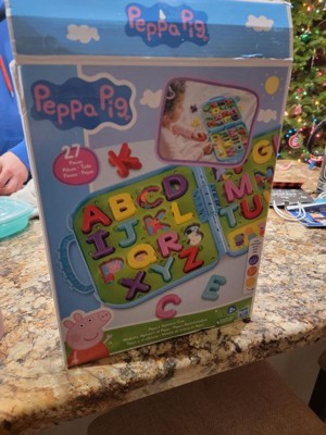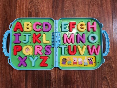 [This review was collected as part of a promotion.] I gave this to my four year old for Christmas and he hasn’t stopped playing with it. When he takes all the letters out and puts them back he says the letter, there’s also pictures of peppa and her friends behind each letter