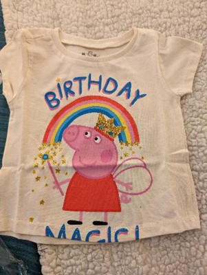 Your little girl is ready for a day of adventure with her favorite character in this cute Peppa Pig shirt! This stylish short sleeve tee features vibrant artwork of Peppa with a choice of a colorful rainbow design with the words "Birthday Magic" or a pretty flower print with the words "Big Sister"! Soft and comfortable, this fashionable Peppa Pig top is perfect for a day of fun and play!