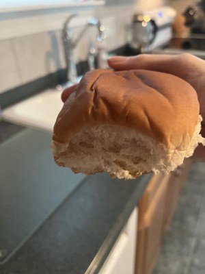 Soft white hamburger bun falls apart