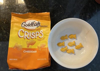 Experience New Cheddar Goldfish Crisps! These irresistible Goldfish are light and airy, always baked, and seasoned to perfection. New bite-sized Goldfish Crisps are the perfect chip-like snack, baked with potato and wheat! Delivering a bold cheddar punch, these crisps are seasoned to perfection and ready for your enjoyment. The 6.25-ounce bag is perfect for sharing, solo snacking, or taking on the go. Try these delicious, fish shaped crisps - available in Cheddar, Sour Cream and Onion, and Salt and Vinegar flavored. Taste How Goldfish Does Chips!