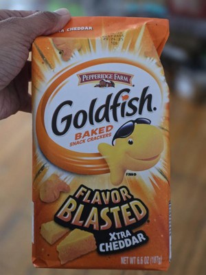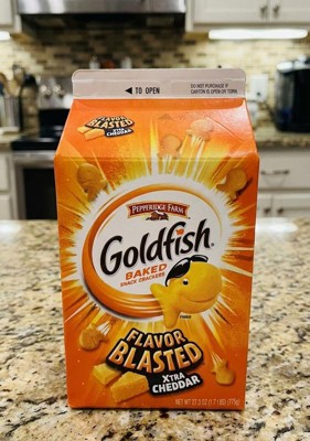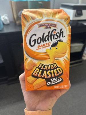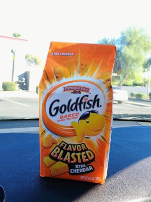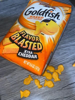 - THE SNACK THAT SMILES BACK: Packed with big, bold flavor, Goldfish Flavor Blasted Xtra Cheddar Cheese Crackers are fun, fish-shaped snack crackers with a smile