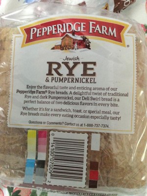 [This review was collected as part of a promotion.] I received a package of the Pepperidge Farm Jewish Rye and Pumpernickel Deli Swirl Bread to review. It came in a 16 ounce bag that was double wrapped for freshness. Growing up in my family we always ate rye and pumpernickel bread. It was a stable in our family. I love it just plain, toasted or made with a sandwich. It is made with enriched wheat flour, whole grain rye flour, barley flour and a little onion and garlic powder. The slices are big and were only 80 calories with only 1 gram of fat. I toasted the bread with cheese or just a little margarine. I would make a sandwich for lunch with the bread. I could have eaten the entire package in a few sittings, it was so good. Pepperidge Farms makes excellent products and this bread is delicious. Eating rye and pumpernickel bread reminds me of my childhood.