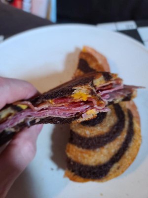 [This review was collected as part of a promotion.] I got this bread a few days ago and was so eager to try it! I love ry and pumpernickel so having both in one bread is exciting! I decided to make a grilled sandwich with various meats and cheese. I layered roast beef, pastrami, salami, bacon and sharp cheese. I grilled it like making a grilled cheese sandwich only with the added meat. Kinda like making a panini without the panini machine! It turned out perfectly! The flavors of the rye and pumpernickel came through with every scrumptious bite! It was so delicious and oh so satisfying! I think I'll try avocado toast with an egg on my new favorite bread for breakfast tomorrow! The possibilities for this bread are endless!