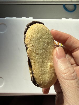 [This review was collected as part of a promotion.] I thought the cookie part was going to be more soft and was disappointed when I bit into it and it was hard and crunchy. I was also disappointed on how little of the Dark Chocolate cream was in between the two cookies. I just felt like I would have liked it better if they were softer and had more dark chocolate. It felt disproportionate.