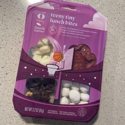 Teeny Tiny Lunch Bites Uncured Pepperoni, Mozzarella, Dark Chocolate Covered Pretzels & Yogurt Covered Raisins 3.2oz - Good & Gather™