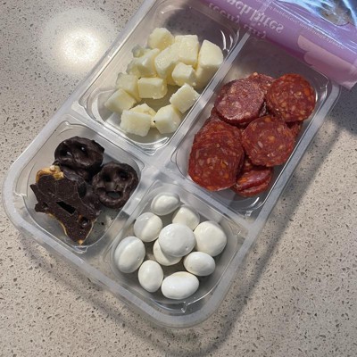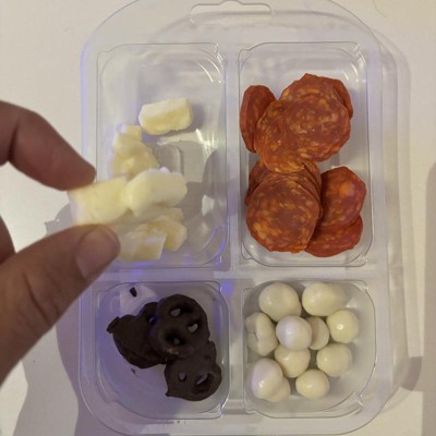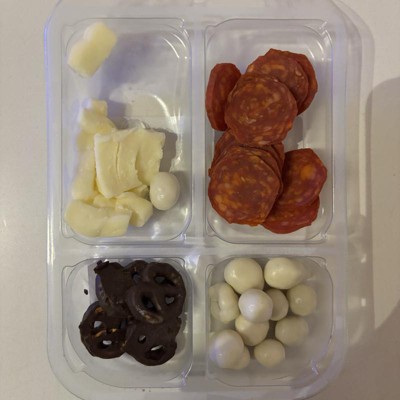 [This review was collected as part of a promotion.] This was a delicious little snack box to help curb hunger between lunch and dinner. My husband, two year old and I all snacked on it and enjoyed all 4 snack options. The cheese bites and pepperoni were delicious together while the chocolate pretzels and yogurt covered pretzels balanced out the savory with a bit of sweetness. I would have preferred a couple more pretzels but overall great variety of snacks. I received an incentive to write this review.
