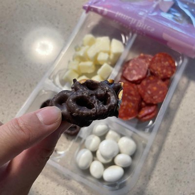 [This review was collected as part of a promotion.] These teeny tiny lunch bites are so great for on the go. I love the variety of sweet and salty! The products taste really fresh and delicious. These are perfect for a quick snack on a plane, on the run or when you have a hangry toddler. I like that they are not completely unhealthy. The dark chocolate covered pretzels were my favorite. My son loves the yogurt covered raisins. They are quite large raisins. Definitely would get more and other varieties. I received an incentive to write this review.
