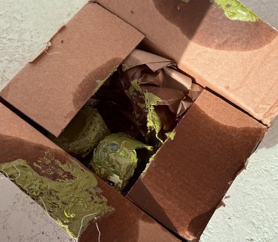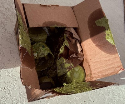 Seals broken, product spilled. Smells, looks, tastes rotten. Ruined my chocolate /money/time. Don’t do it