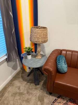 [This review was collected as part of a promotion.] This end table was super easy to put together and took me less than 5 minutes to set up. It’s very lightweight, but the three or legs and wide table surface make it very sturdy. I put it in my office because that’s where I’ll use it but this would fit in incredibly well with a more marine / beach decor. I may have to redecorate around it. I’d definitely recommend if the aesthetic appeals to you.