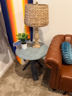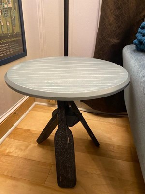 Percy Side Table Gray - Powell: Beveled Top, Nautical Oar Base, Coastal Decor, 22" High