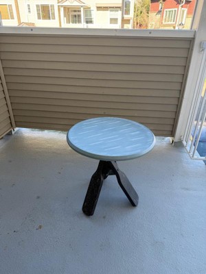 We love the nautical feel of this table. The legs look like oars and the finish is a perfect nautical blue. Great purchase.