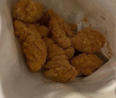 Opened a brand new bag and it only had THREE, just 3 “ full ” sized pieces of chicken strips. The rest was literal crumbs and tiny pieces of popcorn chicken. Not worth buying.