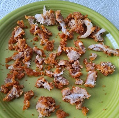 The breading to actual chicken ratio is questionable. I thought their's would be better, but just too much breading, and not a good value. The image is breading from 3 pieces.