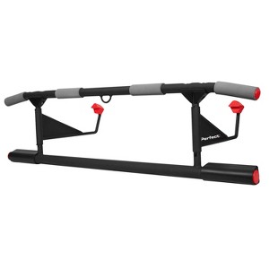 Increase your overall strength and fitness with the Perfect Multi-Gym Max. This over-the-door pull-up bar provides a complete and challenging upper-body workout. Between pull-ups, chin-ups, and knee raises, the Multi-Gym can be used to improve overall strength and fitness in your back, shoulders, arms, and core. Built ready-to-use with no assembly required for an instant and effective workout routine. Add burpees or cardio to keep your heart-rate pumping while you move between upper body exercises or move slow and steady to improve muscle control and skill training. The Multi-Gym features a dual bar that is suitable for various heights as well as durable, non-slip grips for added hand support. Perform both narrow and wide grip pulls, as well as try alternate hand placements to target various muscles in the back and shoulders. Padded wall-mounts protect your doorframe from excessive wear and tear. Two hooks easily hinge open or closed and collapse for flat and convenient storage. The Multi-Gym is designed to fit most doorframes and can be easily moved between different doorways or store out-of-sight. The Perfect Multi-Gym Max is an essential tool to challenge all fitness levels.