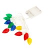 Decorate your house with these beautiful Christmas string lights featuring 10 LED bulbs in Multi-Color. These lights are battery-operated for your convenience and come with a white tip and clear flexible cable, allowing you to hang them anywhere in your home. The bold bulbs are colored in yellow, blue, green, and red, creating a brilliant holiday display that will add a festive touch to your decorations. With a 12" lead and 6" spacing between bulbs, these Christmas lights are perfect for adding a colorful and festive glow to your holiday decorations. They are powered by a battery box that requires 3 AA batteries, making them easy to install and use.