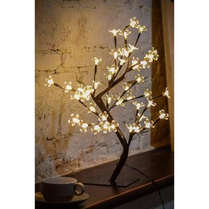 Lovely, elegant cherry blossom tree lights brighten up any home with their beautiful presence. This 2' table top tree can brighten a desk or shelf. The branches are bendable and can be shaped however you like. Includes a sturdy metal base.