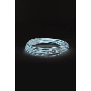 Add some fluorescent glow with this wearable neon string light. Battery operated with a clip to attach to a pocket or belt. Perfect for Halloween, parties, black light bowling or any night time event. You can also these add these to a child or dog stroller for added safety while walking at night. Made from super flexible cable that can easily be shaped into objects or words. It won't retain its shape on its own so you'll need to attach to a wall, grid or other object.