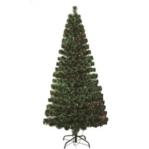 Dazzling fiber optic stands gives this classic green tree a colorful look. Changing hues create a lustrous color pattern.