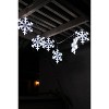 This dazzling snowflake string light can be hung anywhere to create a wintery feel. 6 clear plastic snowflakes light up white with 8 different light functions including Combination, In Waves, Sequential, Slo Glo, Chasing/Flash, Slow Fade, Twinkle Flash and Steady On.
