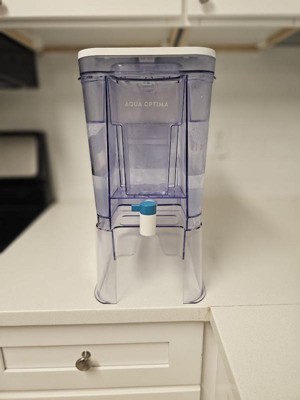 [This review was collected as part of a promotion.] The Aqua Optima 35-Cup Water Filter Dispenser is a reliable, high-capacity solution for households or workplaces. Its sleek design fits easily in my fridge or sitting out on your counter top with included stand, while the 35-cup capacity minimizes refills. The filtration system effectively reduces impurities like chlorine and limescale, providing clean, fresh-tasting water. Being in San Antonio Texas, our water is filled with limestone. By the time the water is dispensed you would have no idea it was there to begin with. User-friendly features include a smooth-pouring spout, easy refilling through the top sliding opening, long lasting filters that I have to set a reminder about as it can be easy to forget with such long intervals. Installation is a breeze and can be done in less than five minutes. The plastic build is sturdy and easy to clean. Overall, this dispenser offers great value for its functionality and capacity.