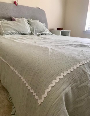 Transform your bedroom into a cozy, cottagecore retreat with the Peri Home Rene Ruffle Bedding Set. Made from 100% cotton matelassé, this comforter offers a quilt-like texture that’s soft, puffy, and inviting. The delicate ruffle detailing adds a charming, vintage-inspired touch, perfect for enhancing your space with a gentle, romantic aesthetic.