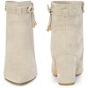 Women's boots with a pointed-toe design add an edgy and sophisticated touch to your look. Whether you're dressing up for a night out or keeping it casual, these boots will effortlessly elevate your fashion game. A must-have in every girl's closet! Sleek faux suede short boots with a bow, offering a perfect fit and a timeless fashion statement. The design details of these block heel ankle boots include a bow decoration and a pointed toe vamp. The vamp is made of faux suede. The outsole is rubber. The heel is made of ABS and has a height of 3 inches. The shaft height is 4.3 inches. Please check the size measurement chart before ordering.