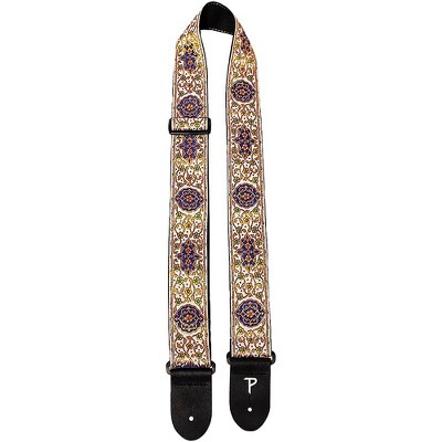 The Perri's Floral Lace guitar strap provides a stylish way to comfortably support instrument during long performances. Its intricately woven lace ribbon and leather ends combine decorative appeal with durable functionality. Adjustable from 39" to 58", the 2" wide strap offers a customized fit for guitar and playing style. Designed for acoustic, electric and bass guitars, the strap's secure leather ends work with all strap lock systems to prevent slippage mid-set. Made by a family-owned Canadian company that has crafted premium guitar straps and accessories since 1998, the Perri's Floral Lace strap delivers a handcrafted product worthy of craft. Express creativity through this versatile strap, a thoughtful gift for any guitarist seeking to make a visual statement.