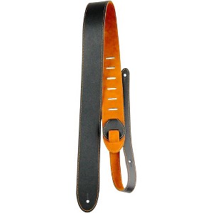 2" wide black leather guitar strap with reversable natural suede backing that is fully adjustable from 44.5" to 53". Made in Canada.