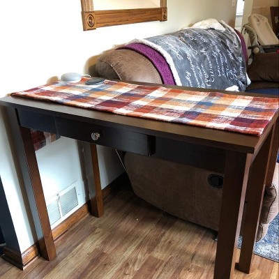 It came well packaged and is easy to assemble. The color is as advertised. It works great for places with limited space. *Some things to be aware of... The table height is actually 34” not 29”. The table finish is a veneer so moisture can cause problems if not wide up right away. Good idea to use a coaster, table runner or tablecloth to protect the finish. Overall this table works as intended and looks nice.