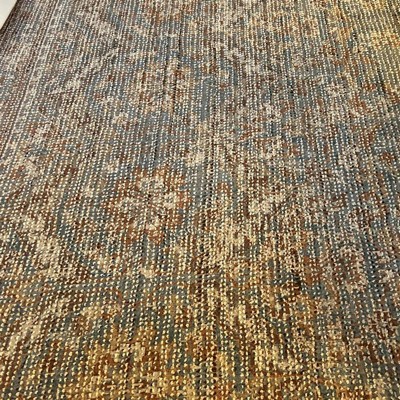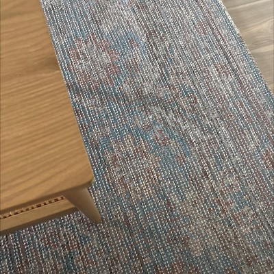 A: The rug is made from 70% polyester, 17% cotton, and 13% wool with a 100% cotton backing.