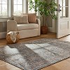 A: The rug features a timeless plaid pattern in brown on a cream-color backdrop.