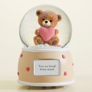 Give the beary special child in your life our A Beary Special Message Personalized Teddy Bear Snow Globe. The snow globe is perfect for Valentine's Day and much more! Plays to the tune "Love Makes The World Go Round " and teddy bear spins when wound