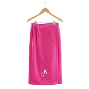 Step out of the bath or shower in signature style with our warm and cozy Bath Time Monogram Towel Wrap! A must-have bath piece for home or pool side - also perfect for those quick jaunts from the dorm room to the shower, wrap fastens quick and easy! Create your own personalized spa-like experience with this classic towel wrap that features your first or last initial in flamingo pink bridal script font.