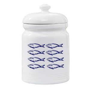 Introducing our charming Ceramic Fish Design Cookie Jar, a perfect blend of functionality and nautical flair. This pristine white jar features a sleek, glossy finish and is adorned with an eye-catching pattern of eight blue fish, arranged in two neat rows. The snug-fitting lid ensures your cookies stay fresh while adding a touch of elegance to your kitchen decor. Ideal for storing cookies, biscuits, or other treats, this cookie jar is both a practical storage solution and a delightful decorative piece. Elevate your kitchen with this whimsical yet sophisticated accessory that brings the serene beauty of the ocean right to your countertop.