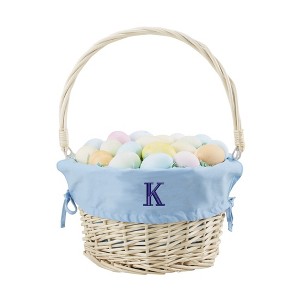 Delight your child this Easter with our Personalized Initial Willow Easter Basket with Folding Handle. This beautiful, hand-woven basket comes in a natural color and measures approximately 17"-19" H x 12" D with the handle. Each basket is unique, with slight variations in color and size, adding to its charm. The basket is not just functional but also adorable and can be cherished for many years. It comes with white metal hinges on each side of the handle for easy storage. Please note that the handle does not stand up on its own. The standout feature of this basket is the removable liner, personalized with any initial of your choice. The liner includes a tie closure and can be spot cleaned for convenience. This personalized Easter basket is perfect for filling with Easter basket stuffers, making it an ideal gift for your little one. Please note that the basket content is not included. Whether it's a baby's first Easter or a fun surprise for an older child, this personalized willow Easter basket is sure to make their day extra special.