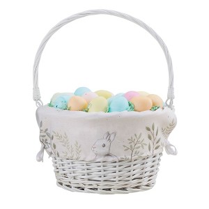 Celebrate Easter in style with this adorable wicker Easter basket, beautifully lined with a soft fabric featuring a delicate bunny and floral design. The neutral tones and rustic charm make it a perfect addition to any Easter celebration.This basket is ideal for egg hunts, festive decorations, or as a thoughtful gift for loved ones. The sturdy woven handle ensures easy carrying, while the fabric lining adds a cozy, handcrafted touch.Whether used for collecting Easter treats or as a charming springtime decoration, this basket is sure to bring joy to the holiday season!
