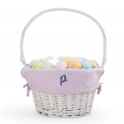 Elegant Easter Basket with Personalized Pink BowMake Easter extra special with this beautifully crafted white wicker basket, adorned with a luxurious pink satin bow. The oversized bow adds a charming touch, and it can even be personalized for a unique and thoughtful gift.Perfect for Easter egg hunts, gift-giving, or as a stunning holiday centerpiece, this basket is both stylish and practical. Its sturdy design ensures it can be used year after year, making it a treasured keepsake for children and adults alike.Celebrate Easter in style with this elegant and personalized Easter basket!