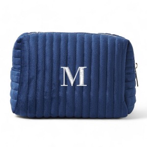 Personalization Mall Embroidered Initial Small Navy Velvet Makeup Bag