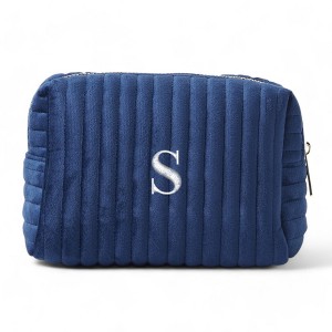 Personalization Mall Embroidered Initial Small Navy Velvet Makeup Bag