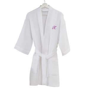 Personalization Mall Embroidered Waffle Weave Robe - White