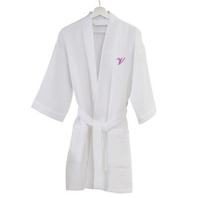 Find luxury in this Embroidered Waffle Weave Robe. This knee length robe makes for a perfect gift for anyone who loves a personalized touch in their self care routine. The lightweight fabric makes this the perfect dressing gown, or robe for the warmer months. Make your home feel like a spa with this mint colored robe, featuring your first or last initial embroidered in white fancy script font.