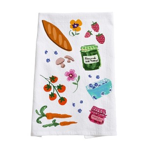 Bring the charm of a fresh farmers market into your kitchen with this beautifully illustrated tea towel. Featuring vibrant, hand-painted designs of market favorites—crusty bread, fresh berries, garden vegetables, homemade jam, and more—this towel adds a cheerful and rustic touch to any space. Made from soft, absorbent cotton, it’s perfect for drying dishes, lining bread baskets, or simply brightening up your decor. A delightful gift for food lovers, home cooks, and farmers market enthusiasts alike!