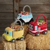 - Crafted from 100% polyester with a plush polyurethane foam filling, this fire truck treat bag captures both adorable charm and sturdiness—perfect for little hands on Halloween night.