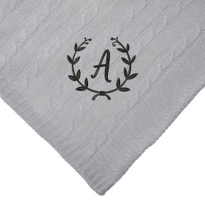 Personalization Mall Floral Wreath Initial Cable KnitThrow Blanket, Grey, 50"x60"