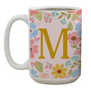 Start each morning with elegance and personalization with the Flowery Initial Personalized Coffee Mug in Gold and Pink. Crafted from high-quality ceramic, this stunning 15 oz. mug features a beautiful gold initial surrounded by a delicate floral design. It's perfect for adding a touch of sophistication to your daily coffee ritual or as a heartfelt gift for a loved one. Microwave and dishwasher safe, this mug combines functionality with style, making it a timeless piece for any kitchen.