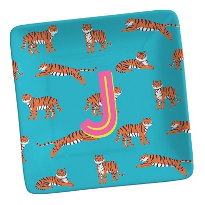 Personalization Mall Flowery Initial Ring Dish, Gold and Pink, J