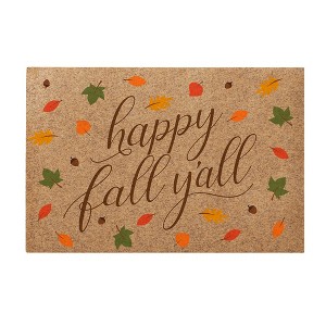 Welcome the enchanting season of fall into your home with the "Happy Fall Y'all" 18x27 Synthetic Coir Doormat from Personalization Mall. This charming doormat adds a festive touch to your entryway, greeting guests with warmth and style. Crafted to replicate the rich texture of a traditional coir mat, its synthetic construction ensures durability without the usual shedding. Made from a blend of polyester and polypropylene, it features a vivid, fade-resistant design applied through state-of-the-art dye-print technology. The non-skid recycled rubber backing keeps the mat securely in place, providing safety and stability. Easy to maintain, simply clean with a hose or sponge and water. Designed for home use, it's ideal for outdoor covered areas, adding seasonal flair while protecting it from excessive sunlight to preserve its vibrant colors. Measuring approximately 18"H x 27"W, it’s the perfect size to complement any doorstep, making this a delightful and functional addition to your fall decor.