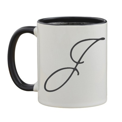 Add some personalized style to your morning cup of coffee with the Initial Accent Coffee Mug. This 11oz mug features your first or last initial in a script font with a black handle and interior. Buy one for the whole family so each person has their own mug, or gift to friends for birthdays, weddings, or housewarmings.