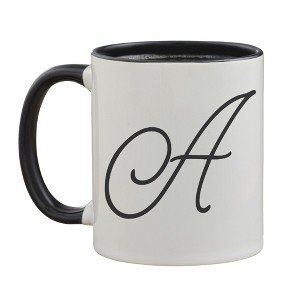 Add some personalized style to your morning cup of coffee with the Initial Accent Coffee Mug. This 11oz mug features your first or last initial in a script font with a black handle and interior. Buy one for the whole family so each person has their own mug, or gift to friends for birthdays, weddings, or housewarmings.