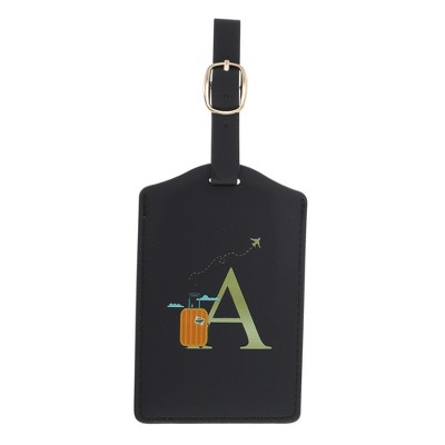 Personalization Mall Leatherette Circle Initial Luggage Tag, Teal, B